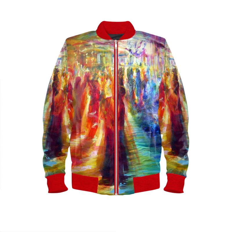 Men's Satin Bomber Jacket | "Rainbow Dance" by Yoram Raanan